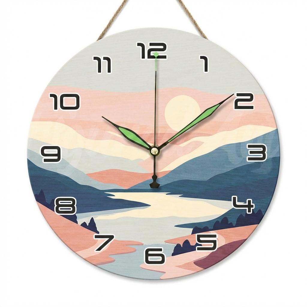 ✅ 1 support d’horloge rond en bois (25 cm) avec motif pré-imprimé